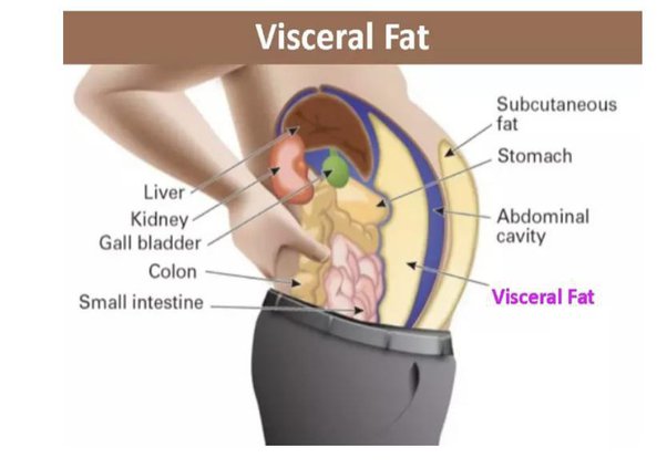 Visceral fat is stored in a person’s abdominal cavity and is also known as ‘active fat’ as it influences how hormones function in the body.